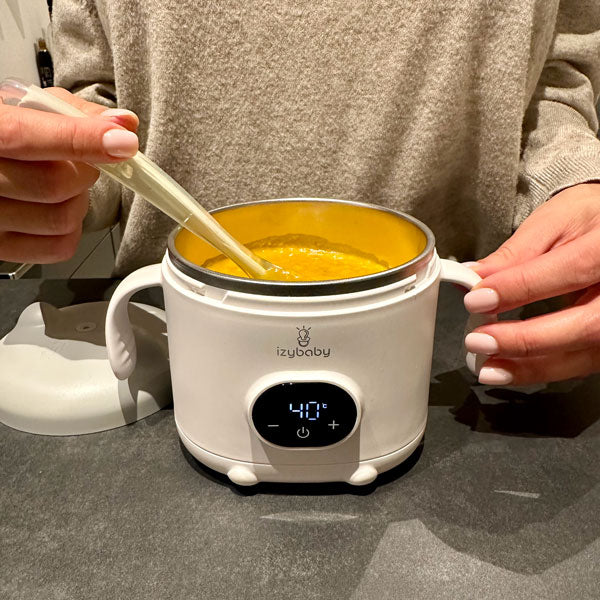 Choice of temperature between 40°C and 50°C to heat all types of food. It takes between 5 and 10 minutes to heat baby's meal or keep it warm.